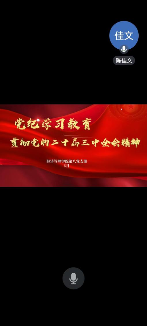 8月15日,经济管理学院第八党支部以线上学习的方式开展了本月党纪学习教育,旨在加强学生党员自我学习、自我监督,确保党纪学习教育有序有效开展。