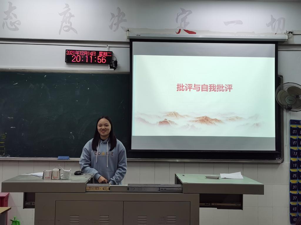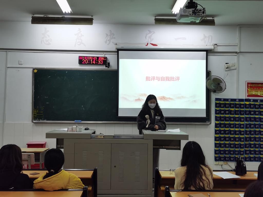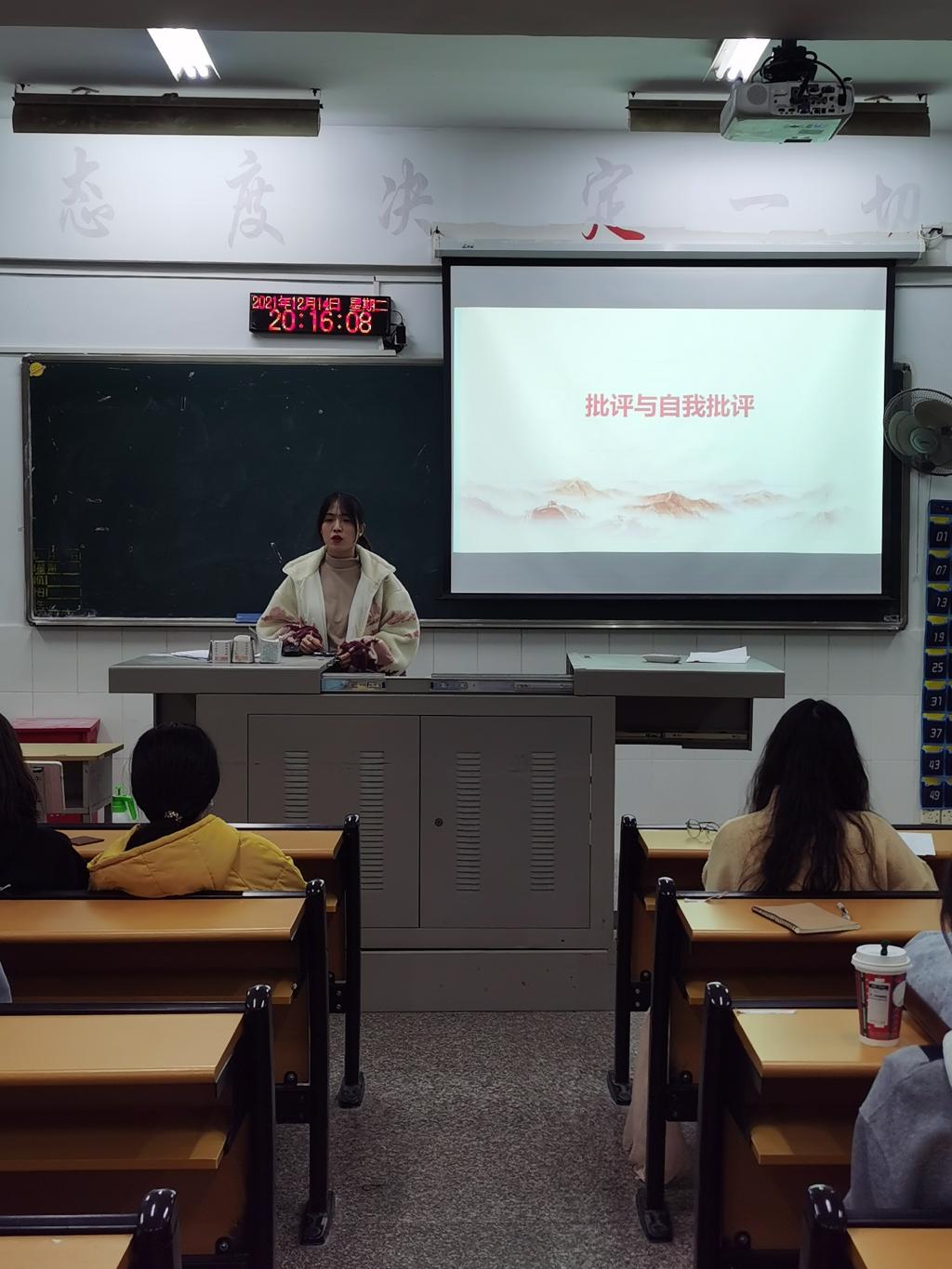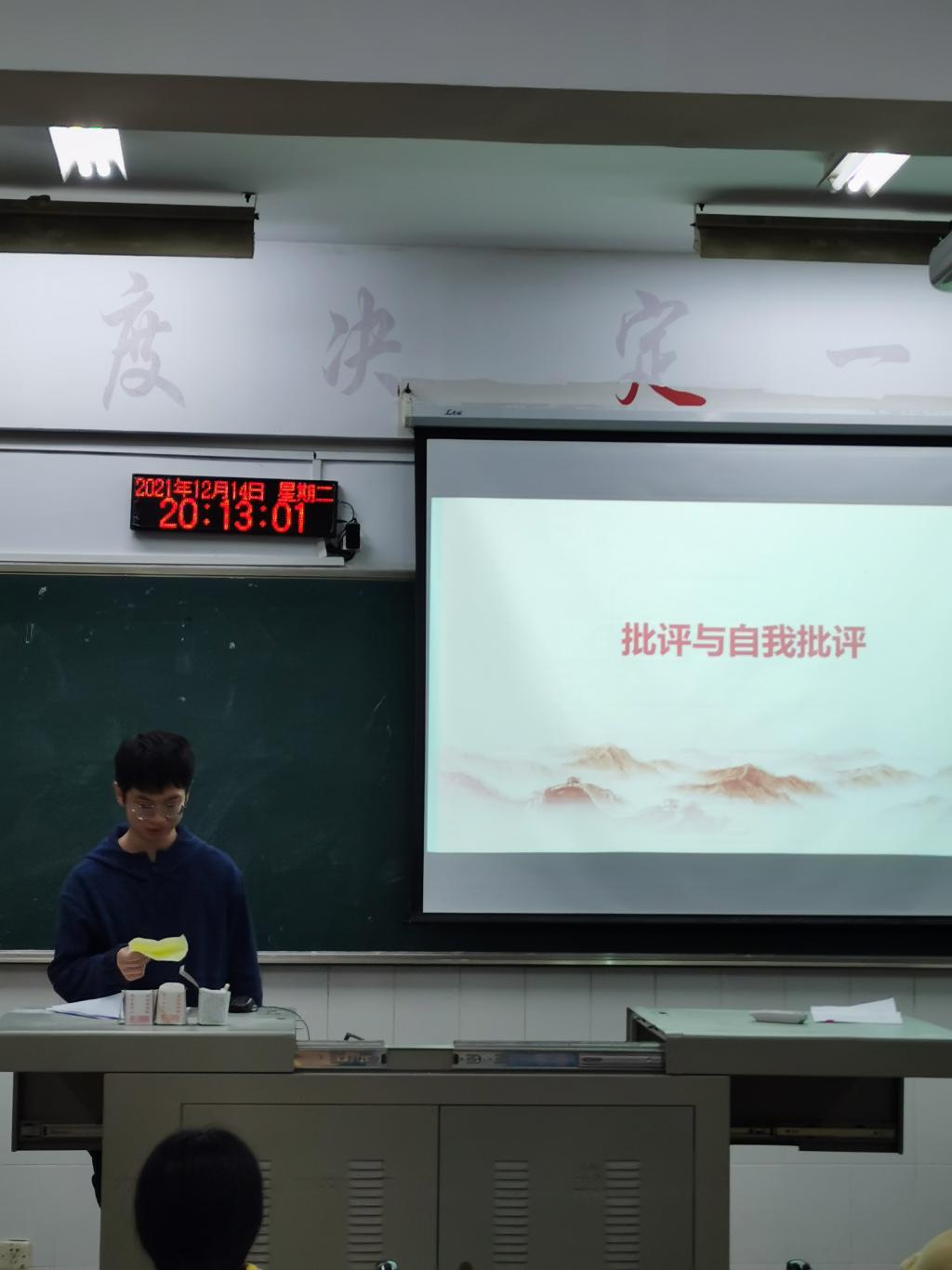 2021年12月14日,由我院党服办公室在商学楼开展的积极分子半月谈活动。这次活动围绕“百年党史铸魂新征程”主题,带领同学们观看了红色电影和进行了批评和自我批评。
