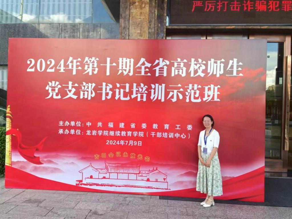为了深入学习贯彻习近平新时代中国特色社会主义思想和党的二十大精神、贯彻习近平总书记关于全面加强党的纪律建设的重要论述,7月8日至12日,省委教育工委在龙岩举办第十期全省高校师生党支部书记培训示范班,来自全省各高校的192名师生党支部书记参加培训。我校第四批“全国党建工作样板支部”教师党支部书记杨淑惠副教授参加了此次培训。