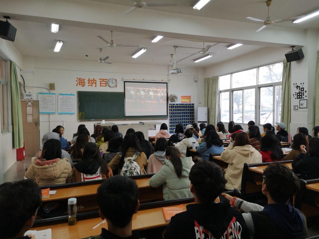 2018年12月18日上午10点,人文与传播学院党总支在文科楼103教室组织全体党员集中观看庆祝改革开放40周年大会现场直播。