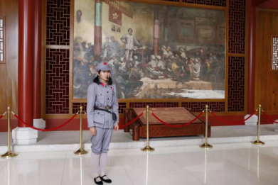 听讲解员讲解红色历史