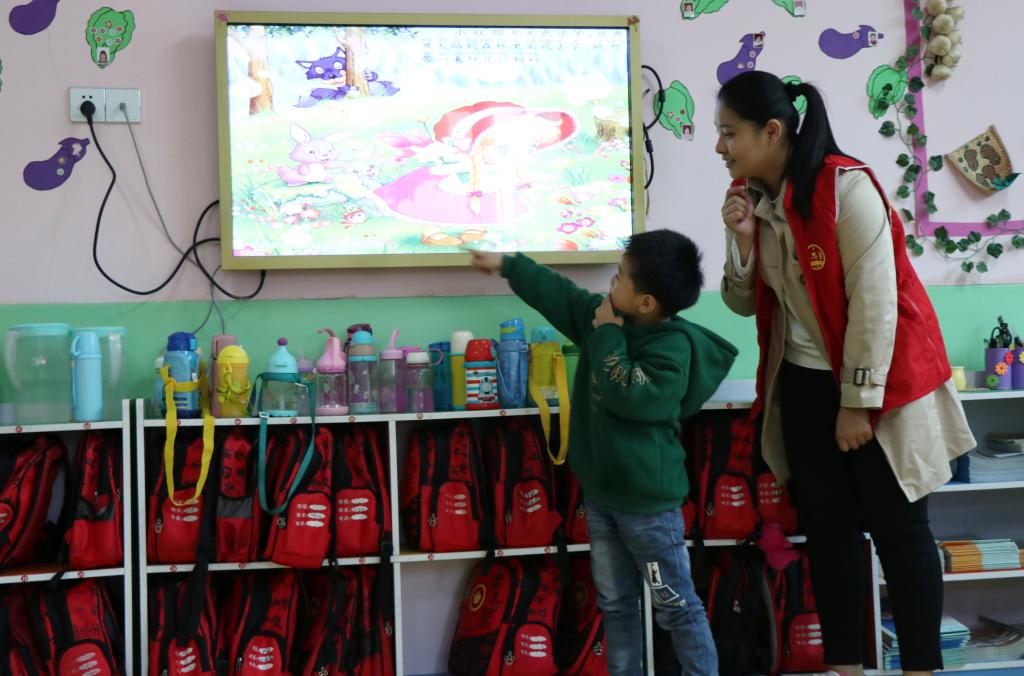 志愿者们播放了《上学歌》、《三字经》等直观形象的动画片,让孩子们读懂“人生的道理”,与小朋友们积极互动,用生动幽默、通俗易懂的语言讲故事给孩子们听,活泼的孩子们大胆上台发言,讲哲理小故事,分享读后心得与感悟,我们一同度过了快乐的午后时光,我们向他们赠送了精美图书。我们向孩子的家长提出倡议,建议他们打造“家庭书架”,有空多陪陪孩子,阅读、郊游、成长,让他们体验童年应该享受的快乐时光。