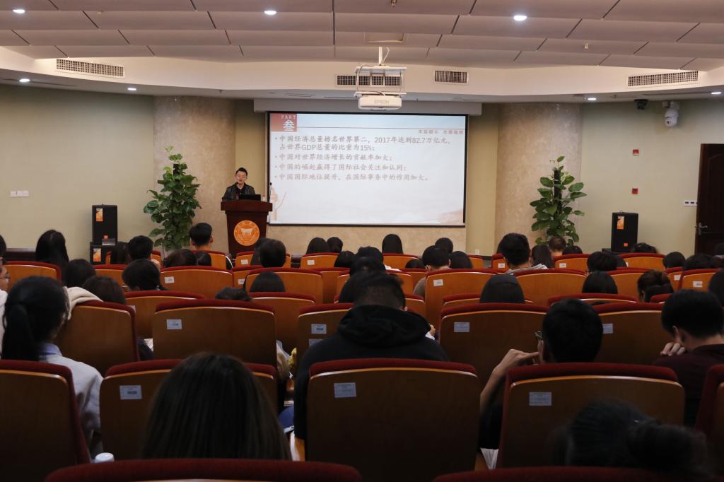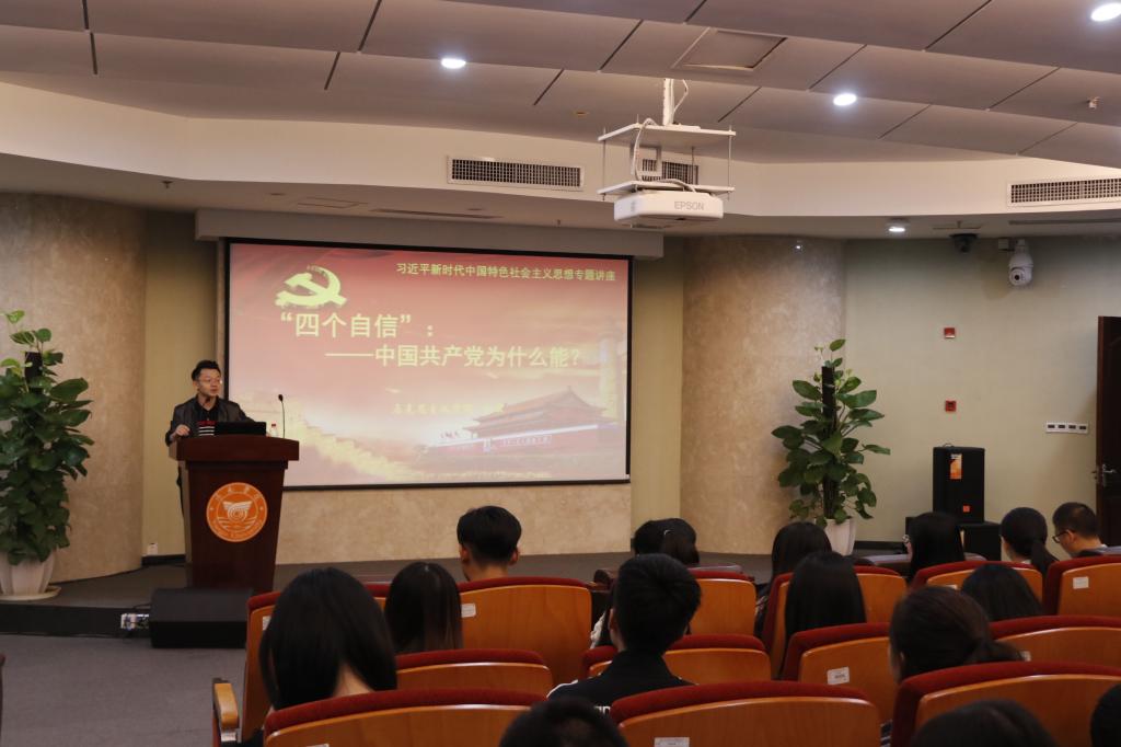 讲座过程中杜云博士结合《习近平新时代中国特色社会主义思想三十讲》的相关内容,以通俗易懂的语言从“四个自信”的背景、实质、特征、功能想大家介绍中国共产党为什么能?并就为什么要提升“四个自信”等方面引经据典的进行深入阐述。结合了一带一路、命运共同体、十九大等时事热点阐明中国到了一个需要自信、能够自信的时代。同时还列举了国内外知名学者对马克思主义的高度评价,让大家深刻认识到学习和实践马克思主义的重要性。
