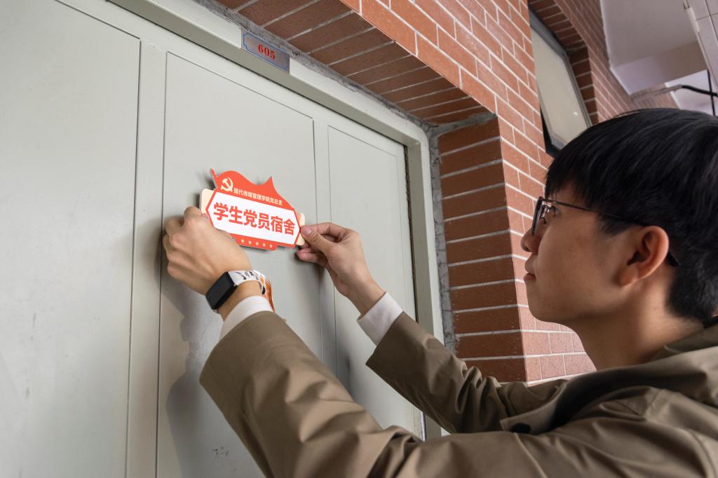 “学生党员宿舍”不仅是一个称号,更是起到树立学生自信和相互督促作用,有助于宿舍间营造良性的竞争氛围,带动身边的同学积极向党组织靠拢。学生党员纷纷表示,宿舍是我们的家,要严格执行党员应该有的责任,建设卫生、安全的宿舍环境。