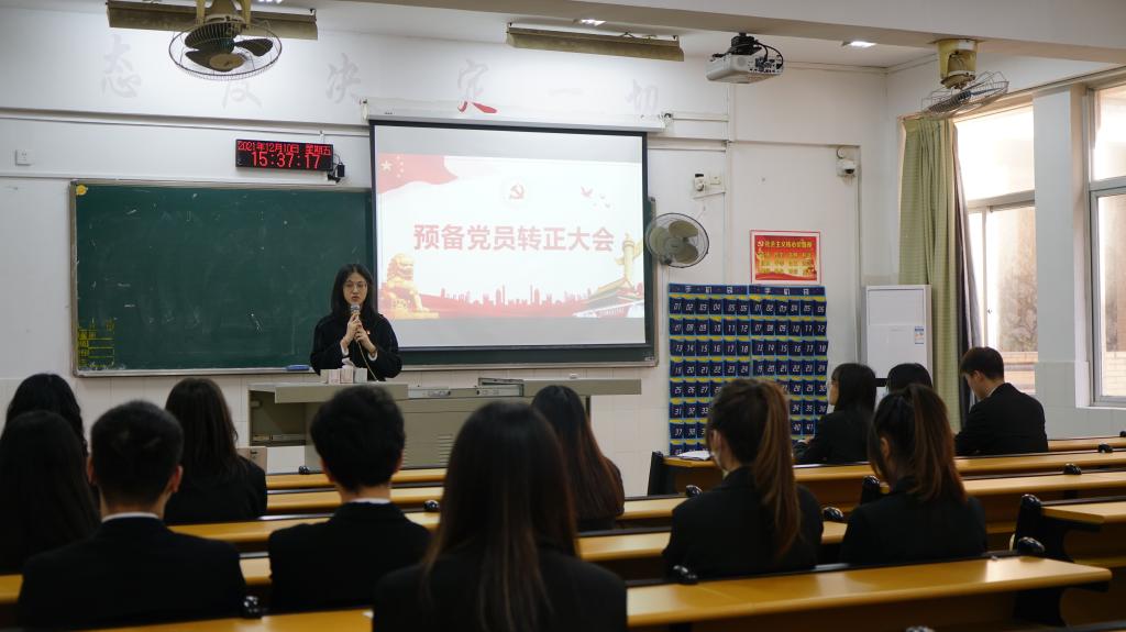 发展党员是高校党建工作的一项重要任务,是党的建设的一项伟大工程,为进一步加强党的基础力量,为党组织注入新鲜血液。2021年12月10日下午,现代传媒管理学院第一学生党支部、第二学生党支部在商学楼309、310教室进行预备党员转正大会。出席本次会议人员有:阳光学院现代传媒管理学院第一党支部书记陈文静老师、第二党支部书记陈瑞锋老师以及两个支部的正式党员同志和预备党员同志。