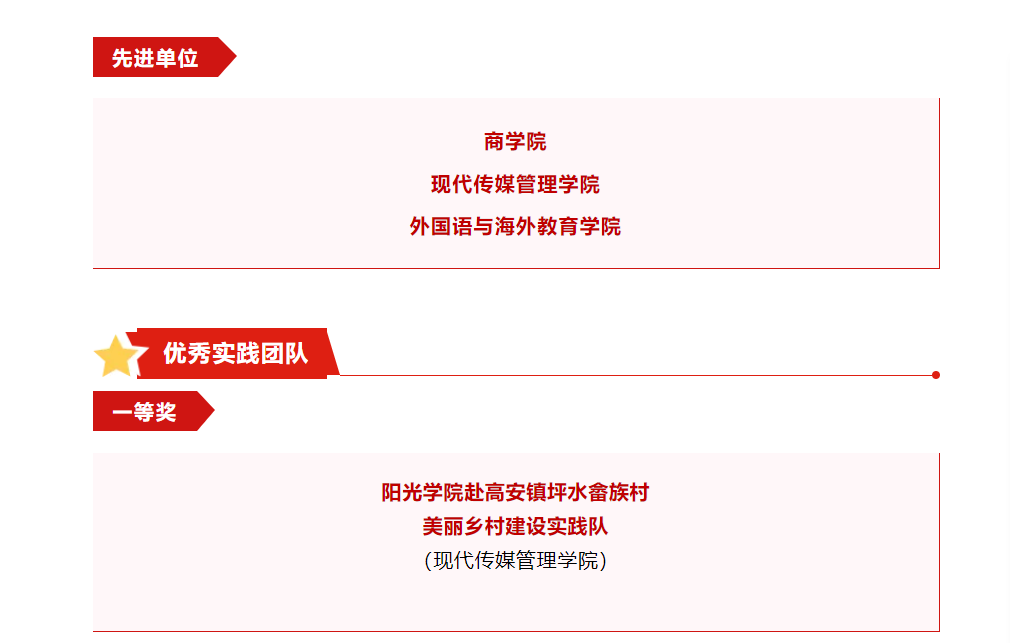 在校级暑期社会实践评选中,我院赴高安镇坪水畲族村美丽乡村建设实践队,通过激烈的角逐获得一等奖的好成绩,卢文兴老师被评为优秀指导老师。同时,我院也被评选为暑期社会实践先进单位。