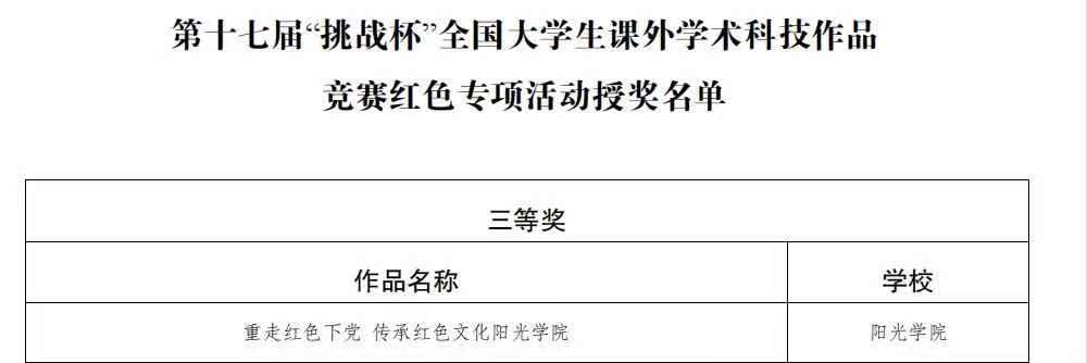 他们认真参加实践,刻苦努力,精益求精,从团队合作精神与个人综合素质等方面全面提高,再次祝贺获奖团队,也感谢指导教师的辛苦付出。不知这个红色作品有没有激起你的自豪之心。让我们为他们点赞。为身为阳光学子而自豪!