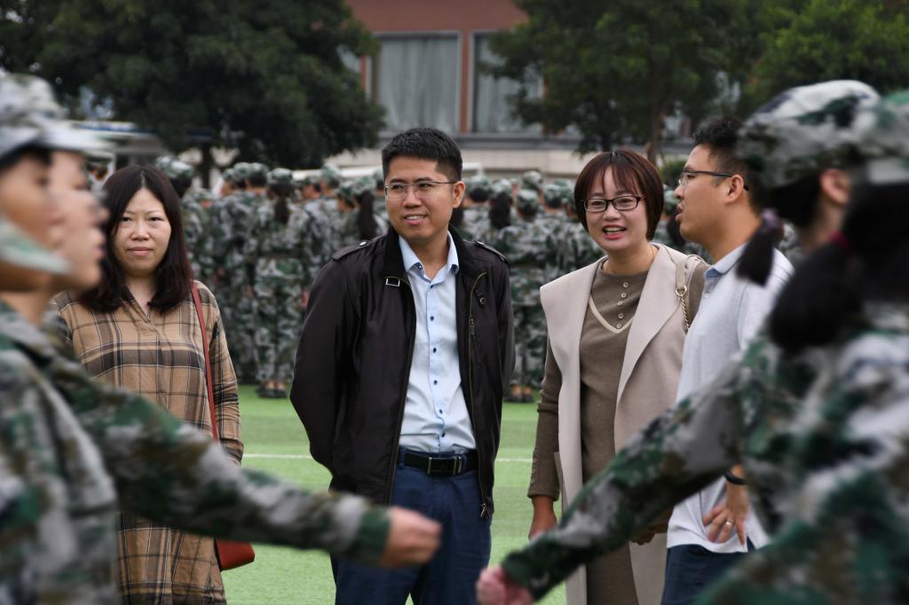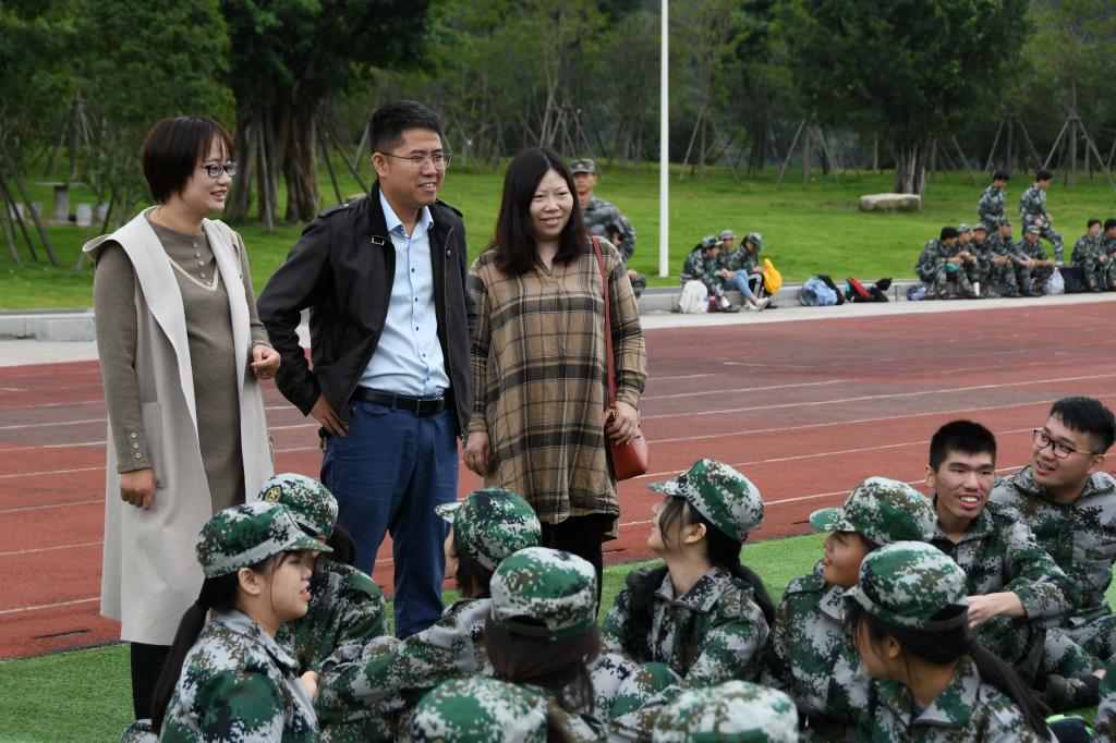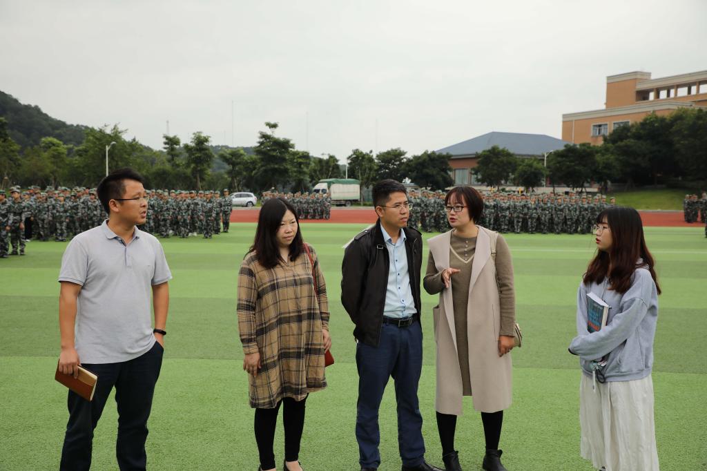 天气微凉,秋风送爽。2020年10月16日上午,现代管理学院院长张其春教授、党总支书记张斌老师、院长助理谢苗苗老师、团委书记任宪敏老师,对我院新生军训工作进行视察,并对参训新生及教官进行关怀和慰问。