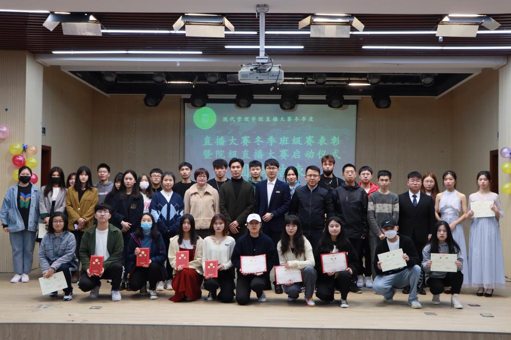 2020年12月29日晚,现代管理学院于商学楼408举办阳光学院直播大赛冬季班级赛表彰大会暨院级直播大赛启动仪式。出席本次大会的有现代管理学院党总支书记张斌老师、团委书记任宪敏老师、直播学院苏广老师、鹿青松老师、现代管理学院辅导员及2020级全体新生。