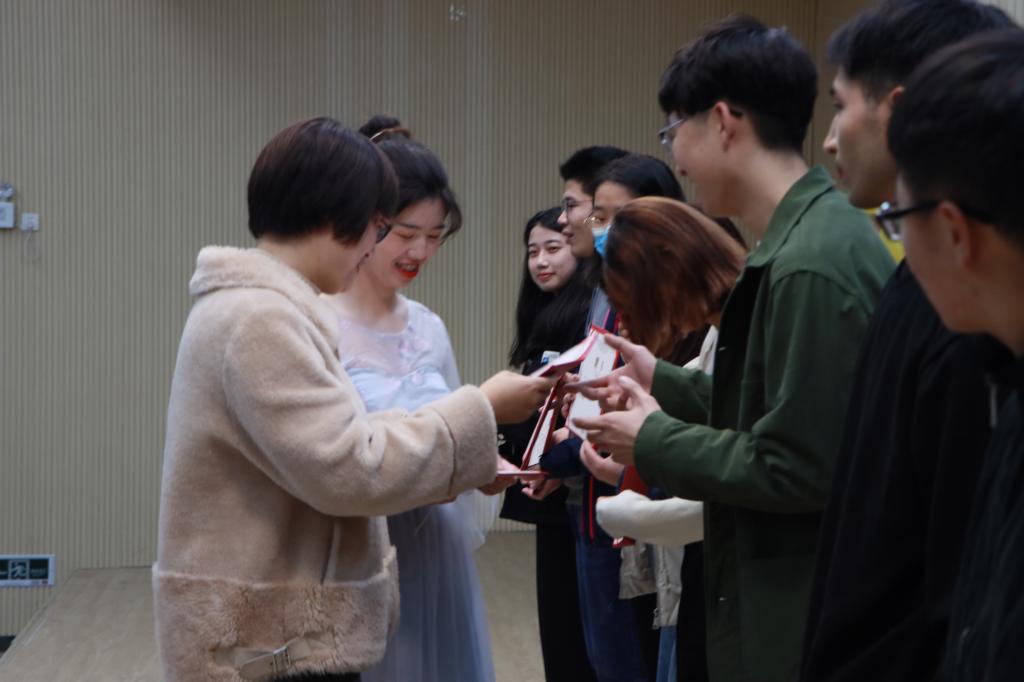首先由张斌老师为苏广老师、鹿青松老师颁发导师聘书,任宪敏老师为我院朋辈导师颁发聘书。学院通过别出心裁的“朋辈导师”方式,从高年级广播电视编导专业的党员中选拔“能拍会导”的学长学姐们,担任新生们的直播导师。导师和朋辈导师为我院直播大赛的顺利开展提供了保障。