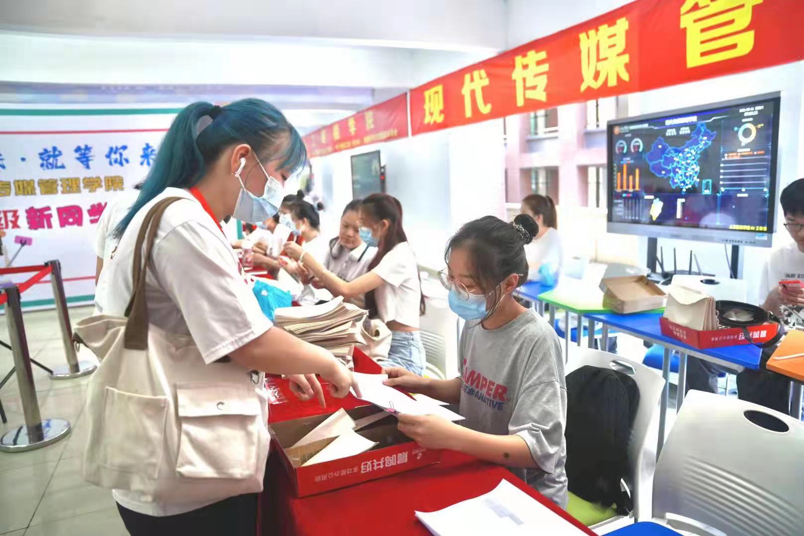 现代传媒管理学院张其春院长、江月英副院长,党总支书记张斌老师、团委书记任宪敏老师、各辅导员、专业老师,亲临现场,统一指挥协调迎新工作。