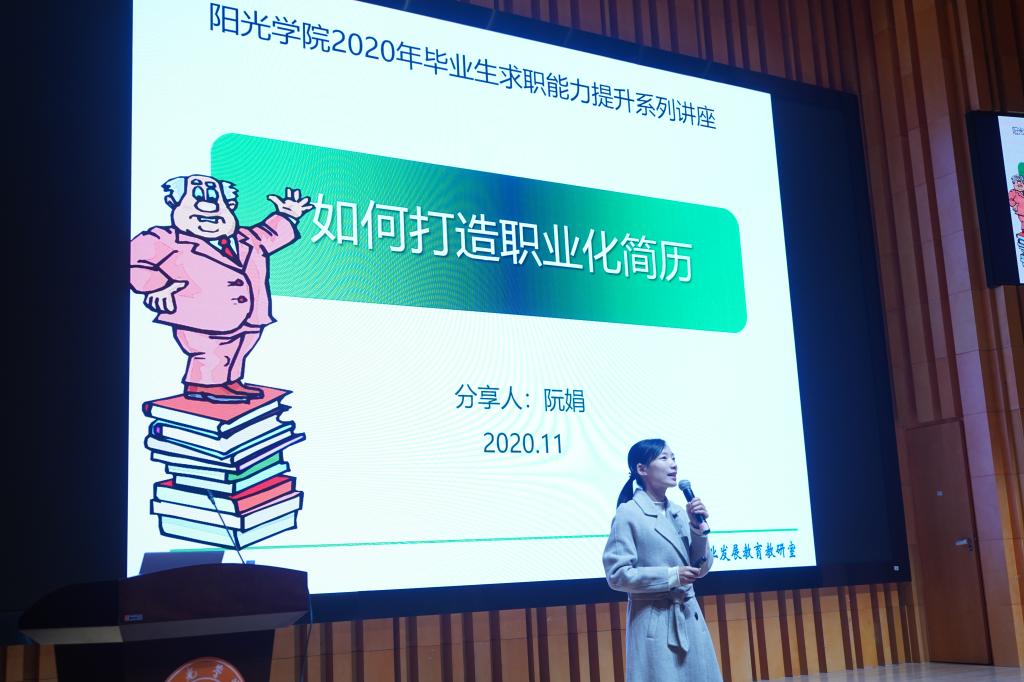 时光荏苒,青葱岁月,一代新生奔赴校园,又一任职场新人奔赴梦想。毕业季来临,2020年11月30日,我校邀请福州大学副教授阮娟老师在音乐厅为同学们带来《简历制作技巧》专题讲座。本次讲座由阳光学院招生就业与校友工作处主办,现代管理学院承办。