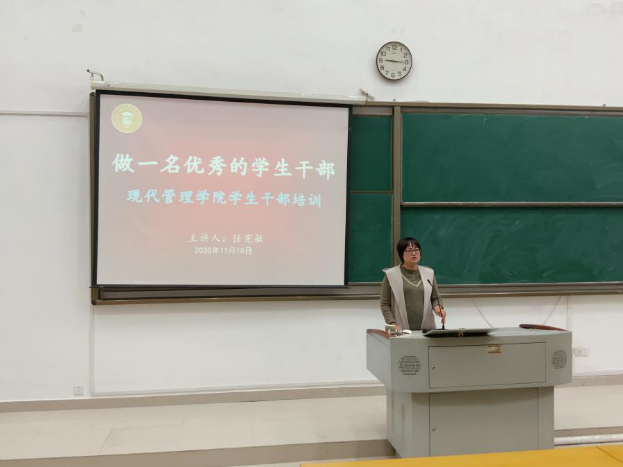 为进一步提高学生会干部的思想政治水平和工作能力,加强部门之间的联络与合作,同时明确各个岗位的工作任务、工作职责、工作要求,有效开展工作,现代管理学院团委学生会于2020年11月10日晚在工科楼207举行干部培训大会。培训主讲人为团委书记任宪敏老师。