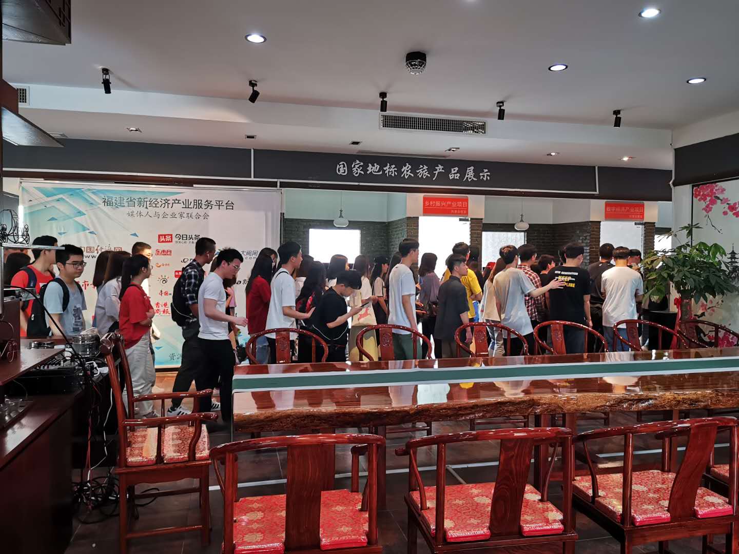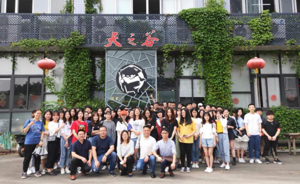 第一站,来到福州仓山区的创业小镇,同学们满怀期待和好奇参观天之谷网络科技公司,天之谷创意总监万希凡热情讲解着他们公司的主营业务,以及公司目前正在开展的项目。一进门便看到了天之谷的土豆侠动漫人物以及各项获奖作品和奖杯证书,同学们纷纷上前与土豆侠合影。参观完公司工作的环境后,便去了路演大厅,万总为同学们播放了公司初期第一个获奖作品、各种自制动漫、和现在正在制作的土豆侠中的小片段。负责人与同学们愉快并热烈的交流着,随后又热情的与同学们合影留念。