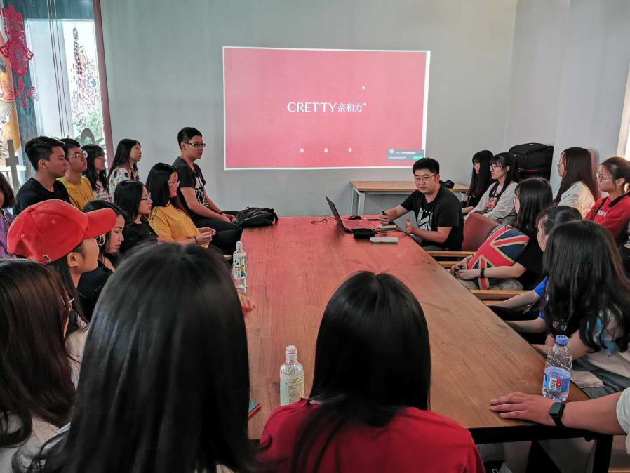 第二站,师生们来到福州亲和力广告创意公司,负责人吴奇,让大家叫他奇哥,说在公司大家都是很亲和随意的。一下子拉近了与大家的距离。奇哥跟同学们分享了公司做的一些产品,并建议同学们在大学期间多参加跟自己专业相关的比赛,锻炼自己的思维能力,对自己以后步入社会很有帮助。也与同学们在广告问题上交流很多自己一路走来的心得。多位学生也向奇哥询问了学校学习的相关盲点和难点,奇哥都耐心地与学生们分享自己的所知、所想。最后奇哥鼓励学生们,四年大学时光每个人度过的方式不同,但只要不放松对自我的追求和提升,四年的青春,你终会光彩绽放。