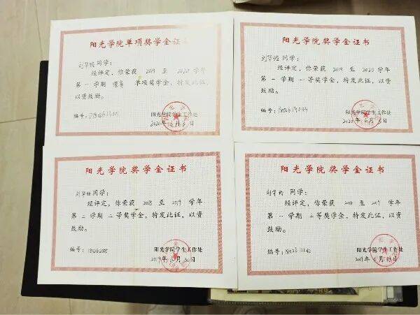2020年6月荣获阳光学院“德育单项奖学金”。
