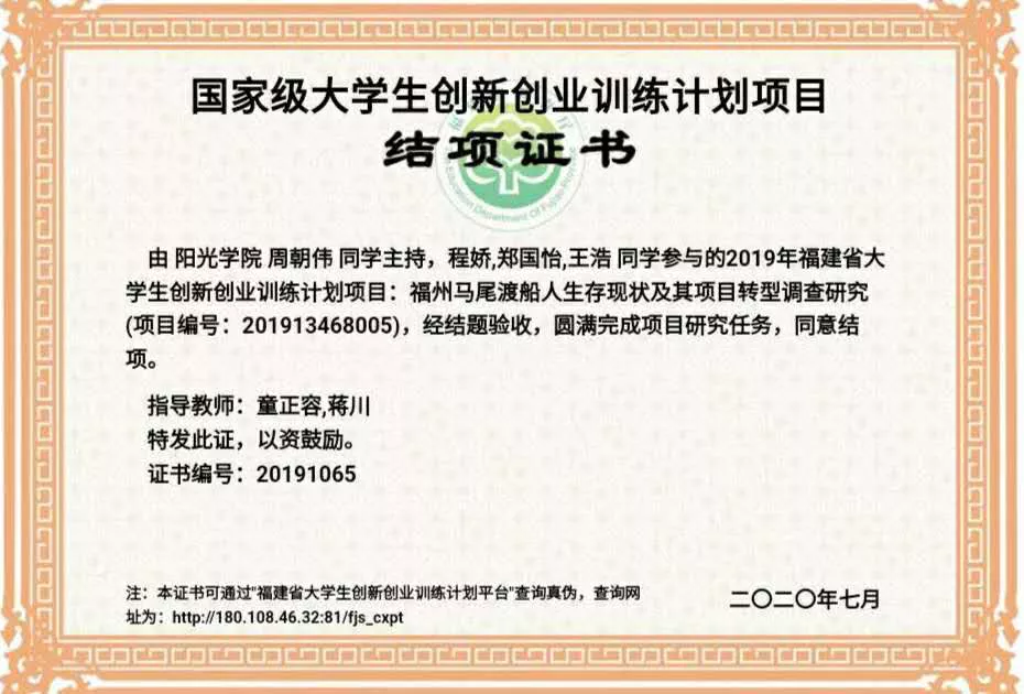 2019-2020 学年获得中国大学生创新创业训练计划国家级优秀结题;