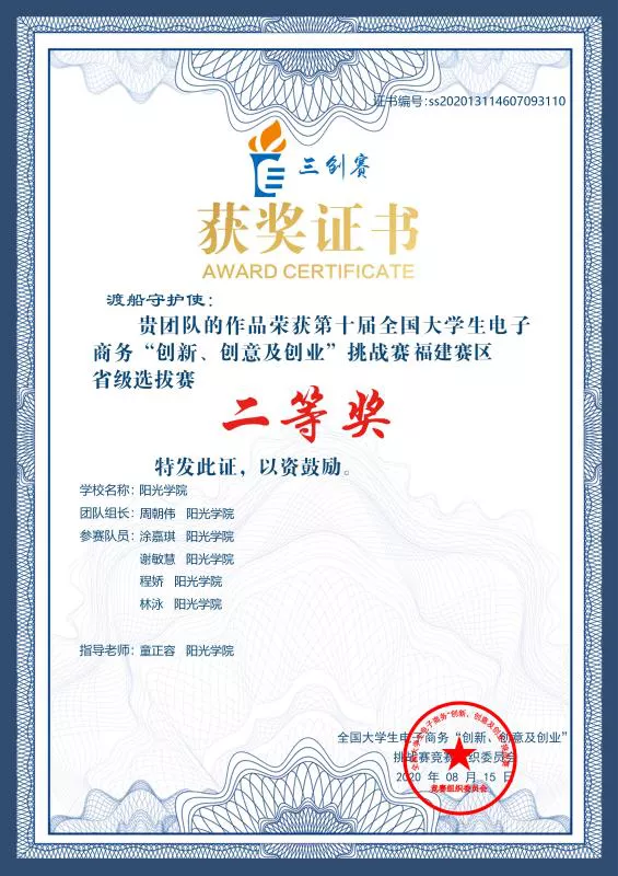 2020-2021 学年获得第十届全国大学生电子商务挑战赛福建赛区二等奖;