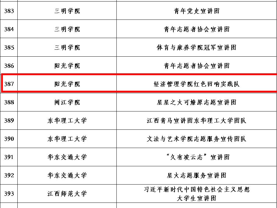 2023年全国大学生井冈山精神志愿宣讲团入选团队名单