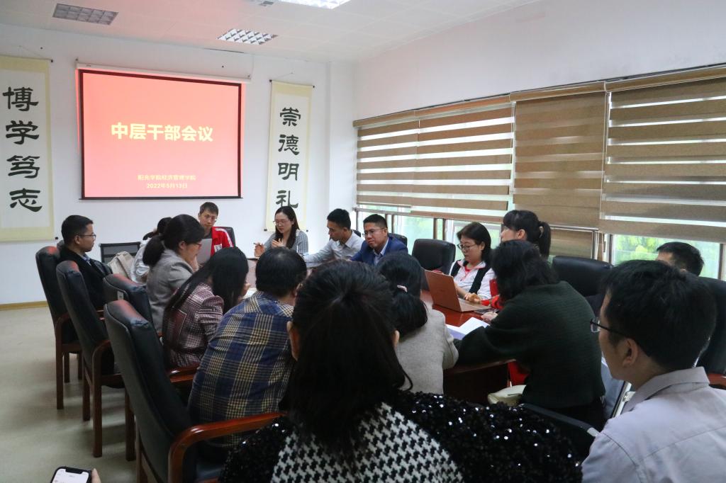 5月13日下午,经济管理学院于商办619召开中层干部会议,经济管理学院院长张其春教授、经济管理学院副院长孙建红教授、经济管理学院副院长苗苗教授、经济管理学院副院长刘正桥教授、经济管理学院党总支书记林辉宗老师及经济管理学院领导班子出席本次会议。