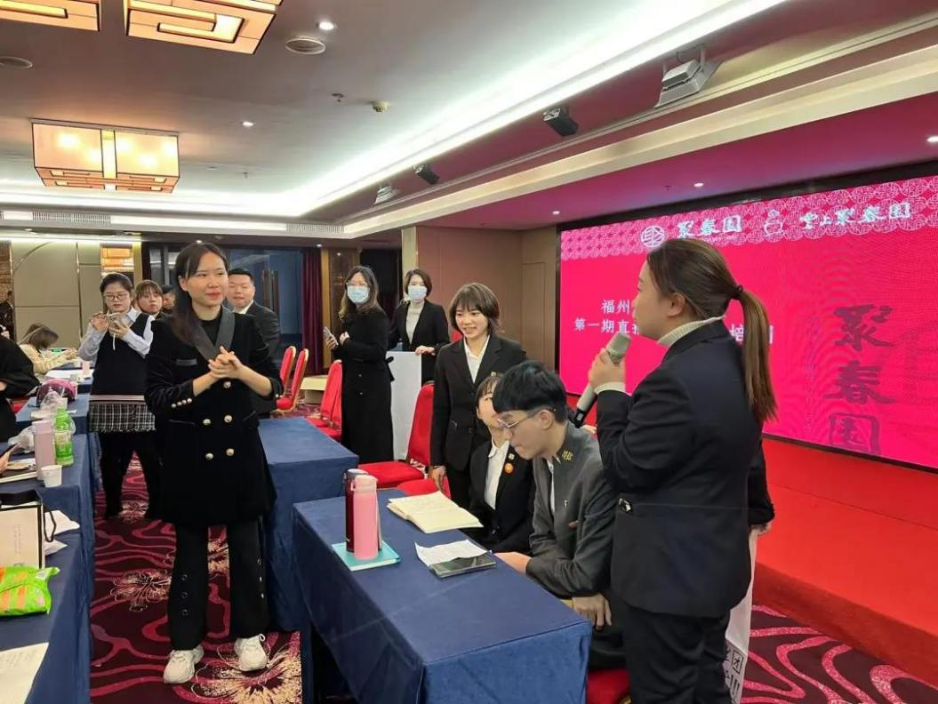 2021年11月22日至26日,我校受邀为福州聚春园开展了为期五天的“聚春园杯”员工直播带货技能培训课程。由朱莉莉、杨雪韵、苏广、张学丽等老师组成优秀的师资队伍,打造了系统的电商直播课程体系。课程采用混合式学习方式,不仅结合教师实践经验和案例向学员传授有扎实的理论知识,还有学员实操环节,教师在实操中指导学员实战技巧,加深其理解和运用,课程内容丰富有趣,备受好评。