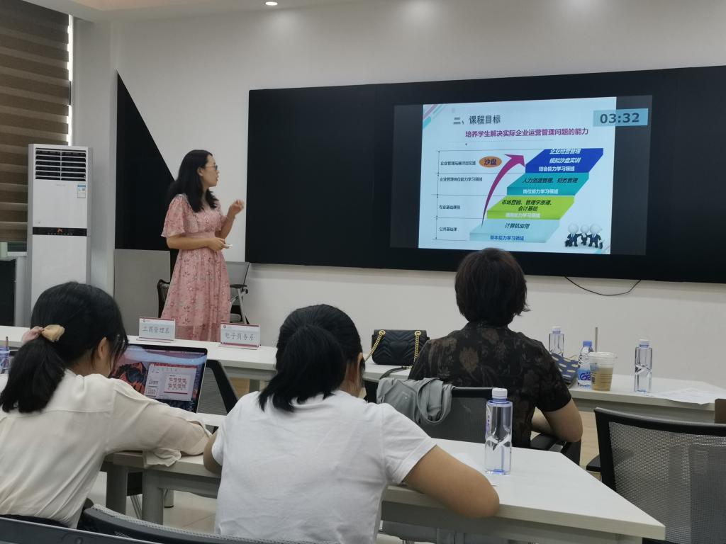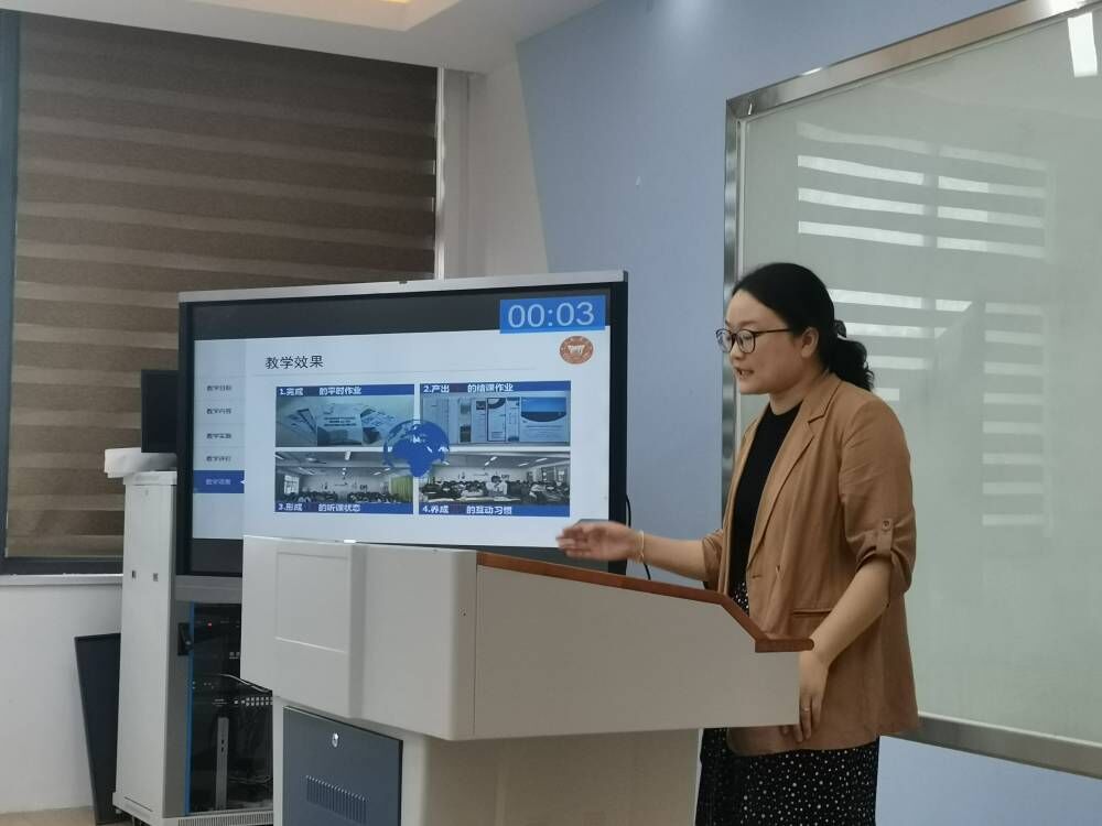 主持人介绍结束后,活动首先开展的是教师示范说课,负责说课示范的教师分别为:吴容容老师、朱莉莉老师、郁榕睿老师、杨淑惠老师。以上教师的精彩示范说课展示,为后续各系专业课教师教研活动作出良好的示范作用。