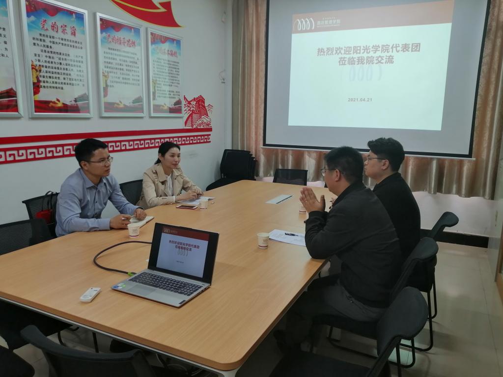 2021年4月21日,两位老师首先前往桂林旅游学院酒店管理学院,与酒店管理学院副书记葛剑、院长助理李欣阳进行座谈交流。徐丹老师首先介绍了阳光学院和现代管理学院相关情况,并重点介绍了酒店管理专业,表示希望通过本次调研交流,增进双方的交流与合作,互鉴互学、共同提升酒店管理专业建设质量。酒店管理学院副书记葛剑详细介绍了酒店管理学院办学情况,并重点介绍酒店管理专业的发展历程。院长助理李欣阳介绍了酒店管理专业实验实训中心建设情况。随后,双方就产学研协同育人机制、学科竞赛、实验室建设、就业与考研指导、校企合作等进行深入交流。