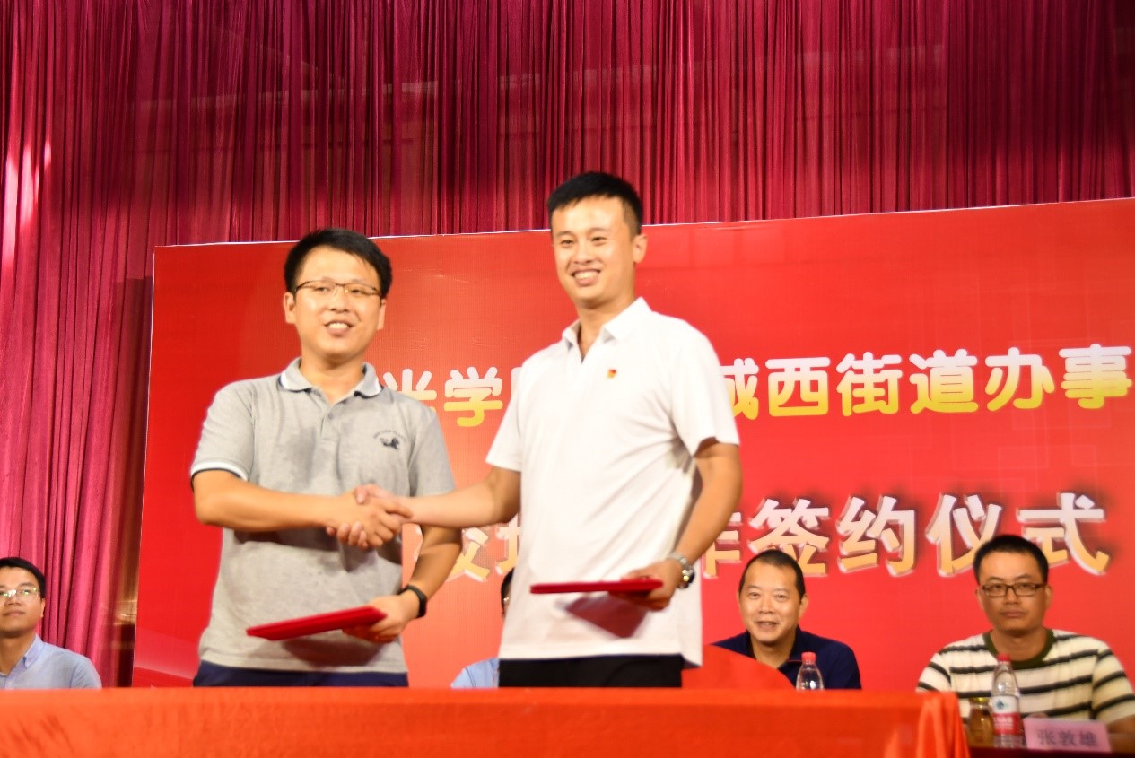随后,阳光学院与古田县城西街道办事处双方签署了共建教学实践基地合作协议,双方领导共同揭牌。