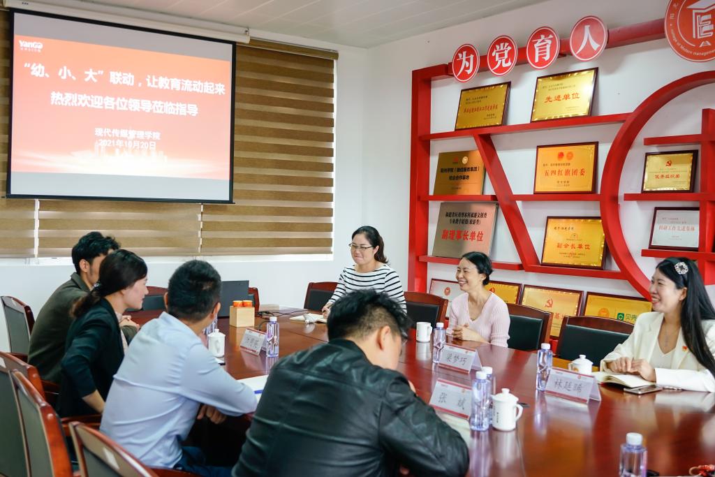 2021年10月20日上午,民革马尾区工委主委、马尾区教育局副局长梁梦巧、马尾实验小学书记林廷晞及马尾第三实验幼儿园园长林婉惺来到我院进行交流,与我院张其春院长、江月英副院长、党总支张斌书记、广告学(直播方向)专业负责人魏韶礼老师及苏广老师进行深入洽谈,双方就大学与小学、幼儿园之间的教育资源流动共享方面的事项展开讨论。