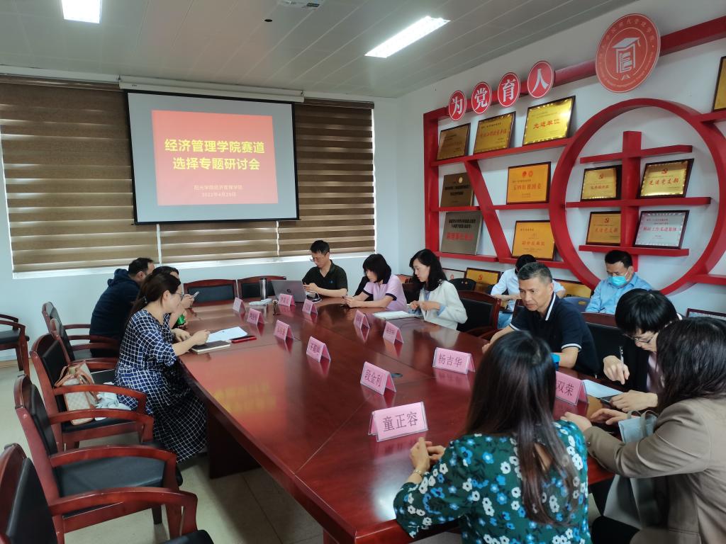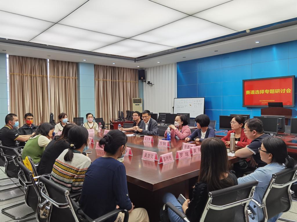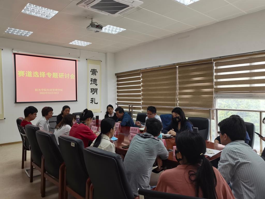 4月29日下午两点,经济管理学院分四个会场于商学楼与文科楼召开赛道选择专题研讨会,经济管理学院院长张其春教授、经济管理学院副院长刘正桥教授、经济管理学院院长助理郁榕睿副教授、经济管理学院院长助理张清荣老师以及经济管理学院各系专业老师出席本次会议。