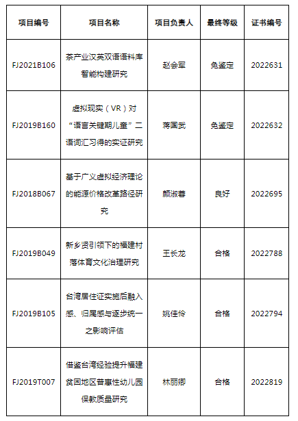 我院一项福建省社科基金项目通过2022年11月 (第三批)结项