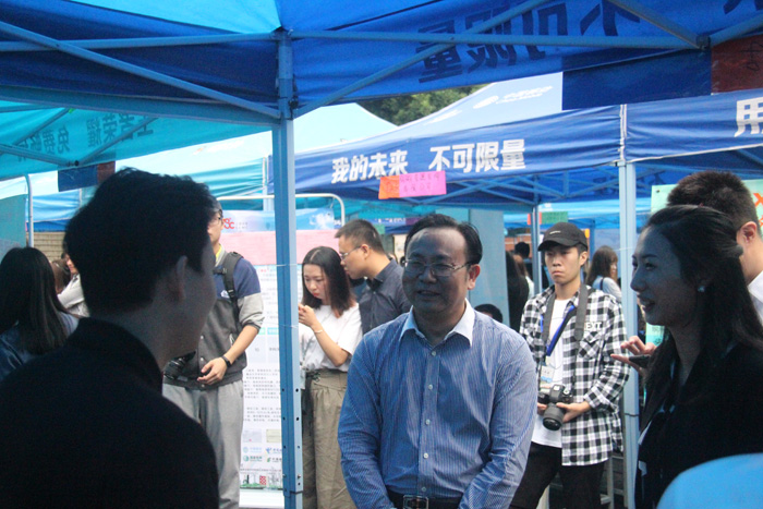 为做好毕业生就业服务工作,大力构建毕业生与用人单位的交流平台。10月26日上午,由校就业指导中心主办,人文与传播学院校友会、土木工程学院校友会及信息工程学院校友会联合承办的2018年阳光学院大型校园招聘会暨校友企业返校招聘会在我校举行。执行校长罗仲尤出席招聘会现场。