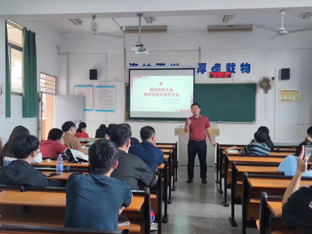 本次就业动员大会是经济管理学院落实2024届毕业生就业工作召开的重要会议,旨在帮助毕业生树立科学、明晰的择业观念,端正就业态度,增强就业信心,使毕业生对自身的就业方向有更深入全面的认识和思考,在未来工作岗位中努力实现自己的人生价值。经济管理学院将为全体毕业生就业做好服务保障工作,为毕业生高质量就业保驾护航。