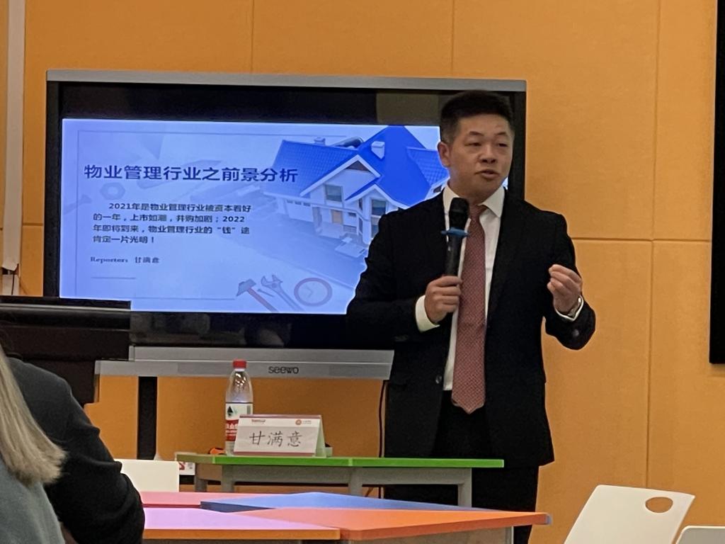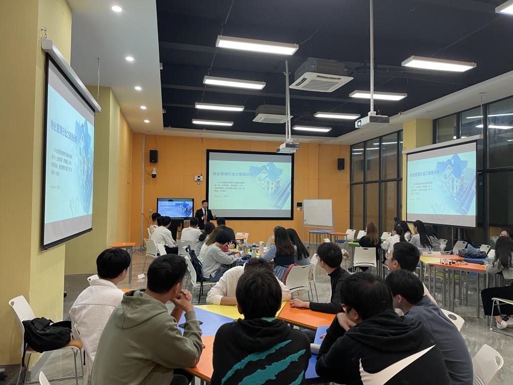 讲座中甘总经理通过2021年度第三季度物业行业报告,高屋建瓴地给同学们介绍了最新物业行业动态,他指出接踵而至的政策利好使得物业行业管理规模和增速屡创新高;与此同时,行业出现了历史性的百亿级并购时刻,行业整合加速,强者恒强的行业格局逐渐显现,不同体量的物企均面临全新的市场机遇。他还分析了物业企业持续深化多种经营布局和广泛拓展行业服务边界在提高企业竞争力中的重要作用。在第二场讲座中甘总经理通过不同业态的物业管理案例,如智慧设备、高空抛物等跟同学们分享落地实用的项目案例解决方案。
