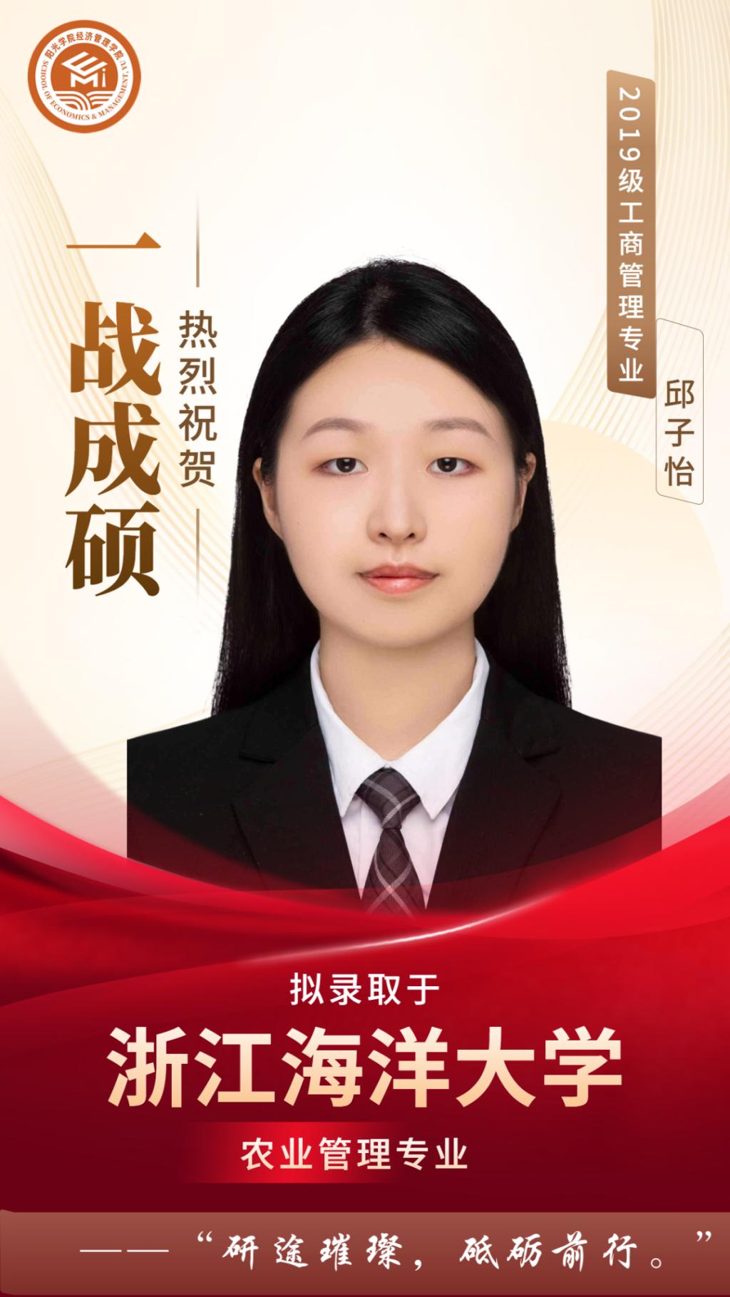 考研喜报⑦ | 经济管理学院邱子怡被浙江海洋大学农业管理专业录取