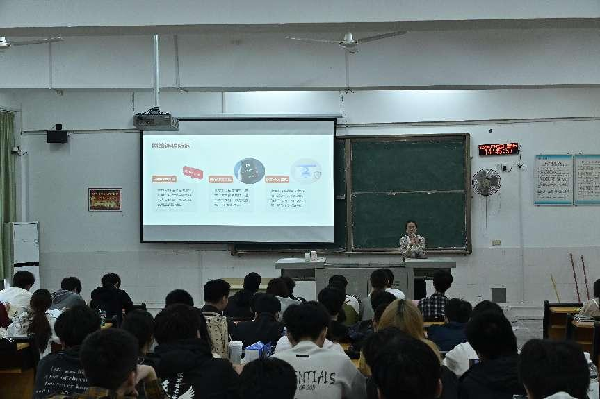 交通安全方面,结合本地实际交通状况,分析了交通事故发生的原因及规律,辅导员重点强调了遵守交通规则的重要性,如过马路要走人行横道、骑行要佩戴头盔等。宿舍安全知识涵盖了用电安全、防滑防摔以及防盗防骗等内容,为大家提供了许多实用的安全小贴士。针对网络安全,特别提醒同学们防范网络诈骗,保护个人隐私信息,不轻易点击不明链接、不随意透露个人账号密码等。