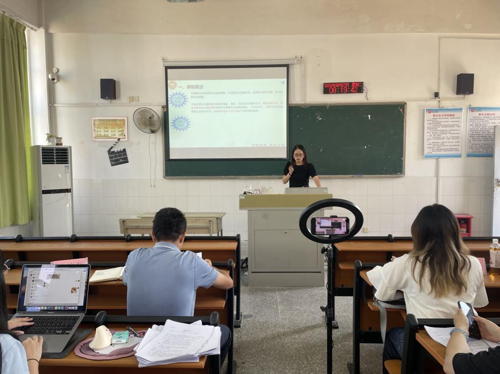 为深入学习贯彻党的二十大精神,全面贯彻习近平新时代中国特色社会主义思想,贯彻落实党的教育方针,筑牢“为党育人、为国育才”的初心使命,经济管理学院把党建工作融入教育教学各项工作中,推动党组织“规范+特色”发展,并于2024年暑期开展了一系列教师课堂教学能力提升系列活动,本系列活动坚持学思用贯通、知信行统一,围绕“理论学习+集体研磨+课堂展示+学科育人案例分享”等内容深度开展。以党员教师示范课为契机,教研组组织理论学习;通过磨课、说课、评课,促进组内的团结协作;通过学科育人案例的分享,加强师德师风建设,落实立德树人根本任务。