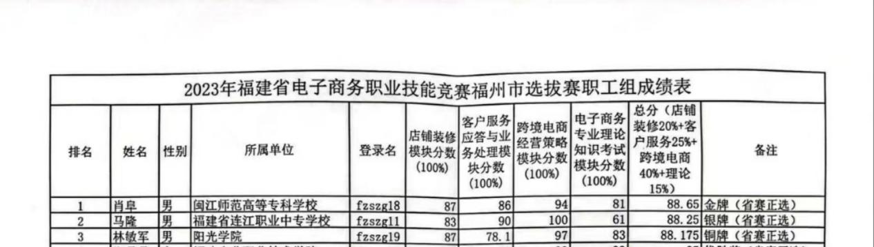 2023年11月26日,福建省电子商务职业技术竞赛福州市选拔赛在福建农业职业技术学院成功举办,我院教师林敏军获得铜奖(第三名),将代表福州市参加福建省电子商务职业技能竞赛决赛。