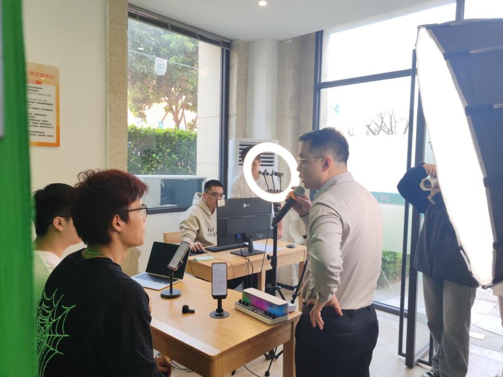 流利通畅的口播,悠然自得的神态,经济管理学院“电商服务”展示平台于西15一站式心理服务中心开展。学生团队在专业老师的带领下现场直播,沉浸式体验电商直播间。