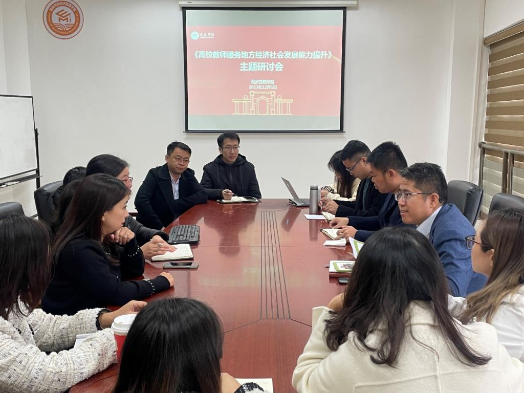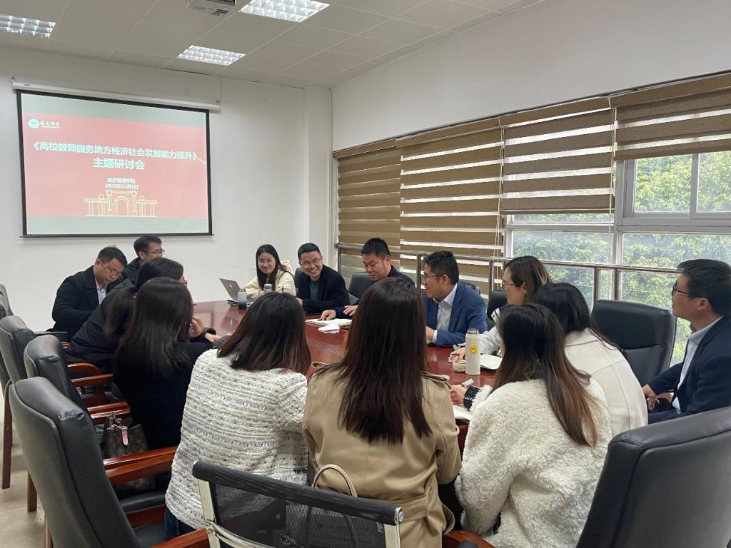 2023年12月1日下午,阳光学院经济管理学院在商办619会议室组织召开《高校教师服务地方经济社会发展能力提升》主题研讨会,学院领导、各系主任、导师组大导师、实战中心主任、实验中心主任、实战教师等参加会议。会议由张其春院长主持。