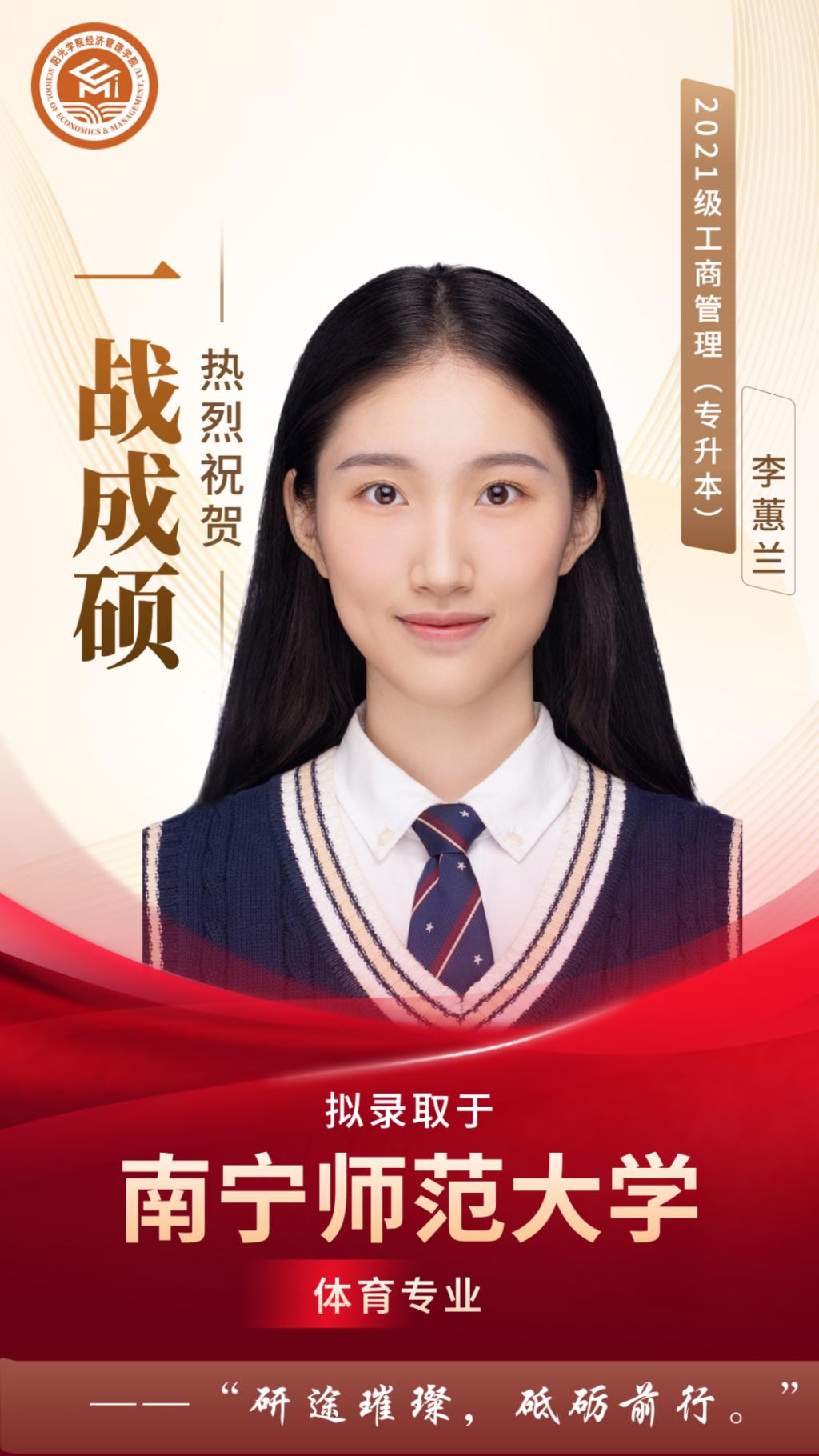 考研喜报④ | 经济管理学院李蕙兰被南宁师范大学体育专业拟录取