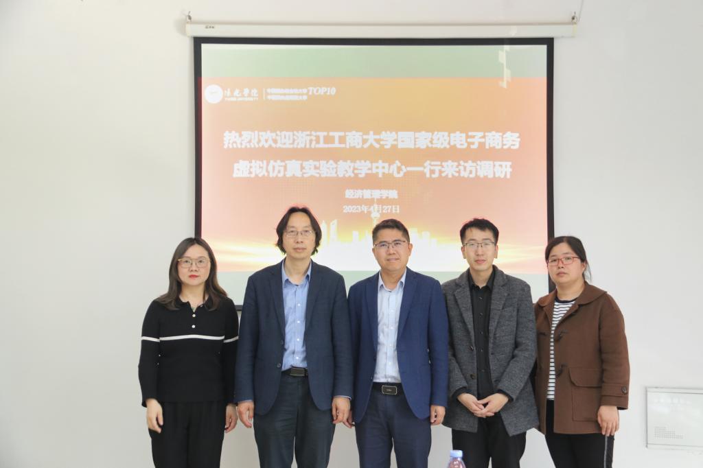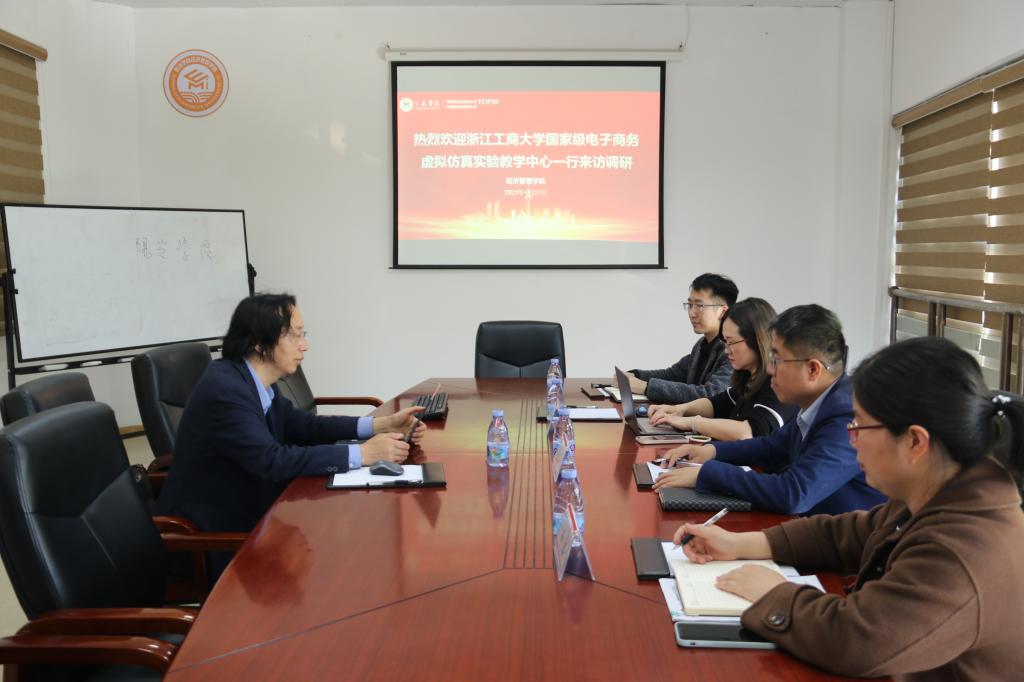 吴功兴副教授详细介绍并展示了浙江工商大学家级电子商务虚拟仿真实验教学中心建设情况,双方就电子商务专业建设、实验平台搭建、三创赛指导等方面进行了深入交流。