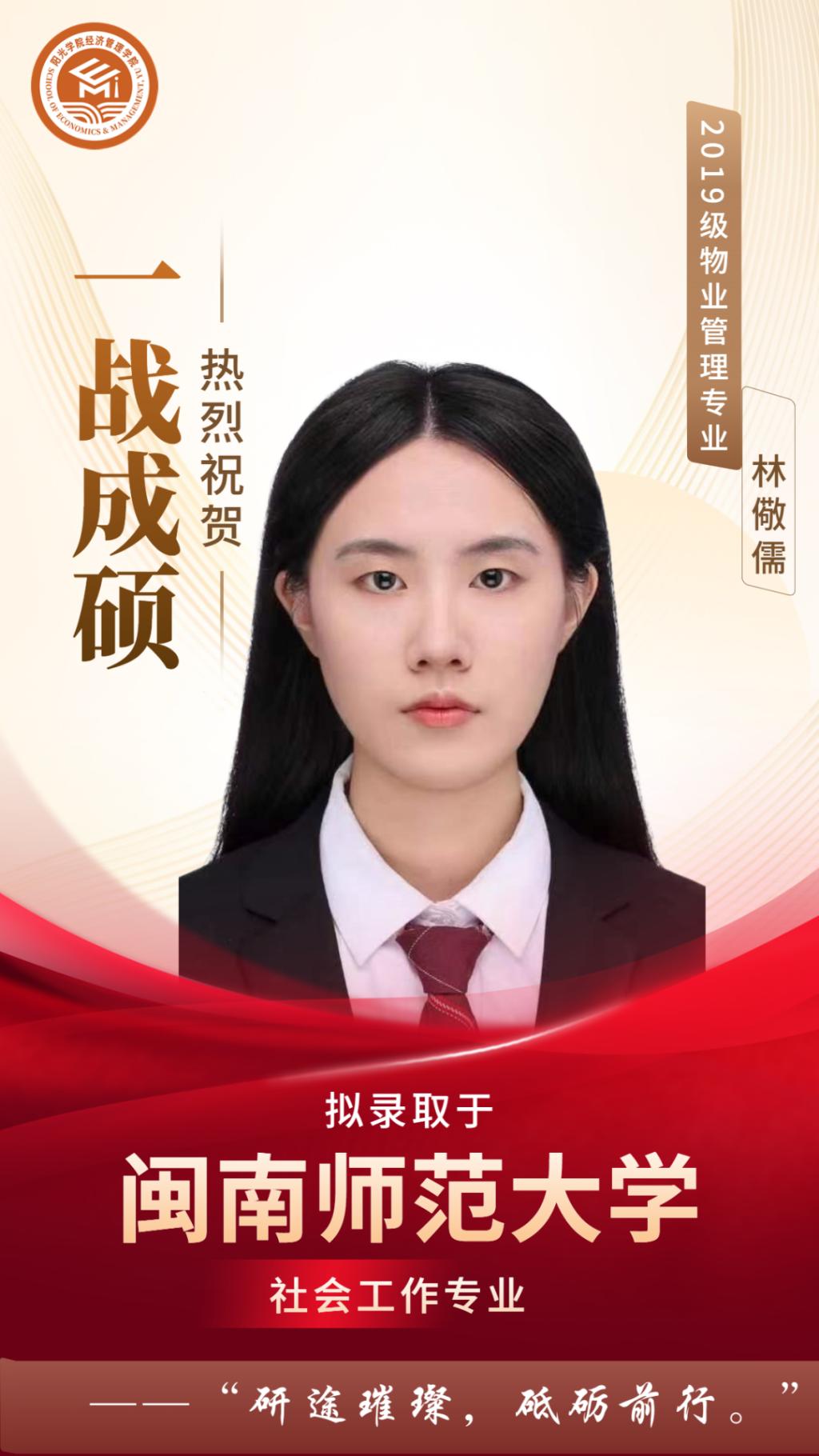考研喜报⑤ | 经济管理学院林儆儒被闽南师范大学社会工作专业拟录取