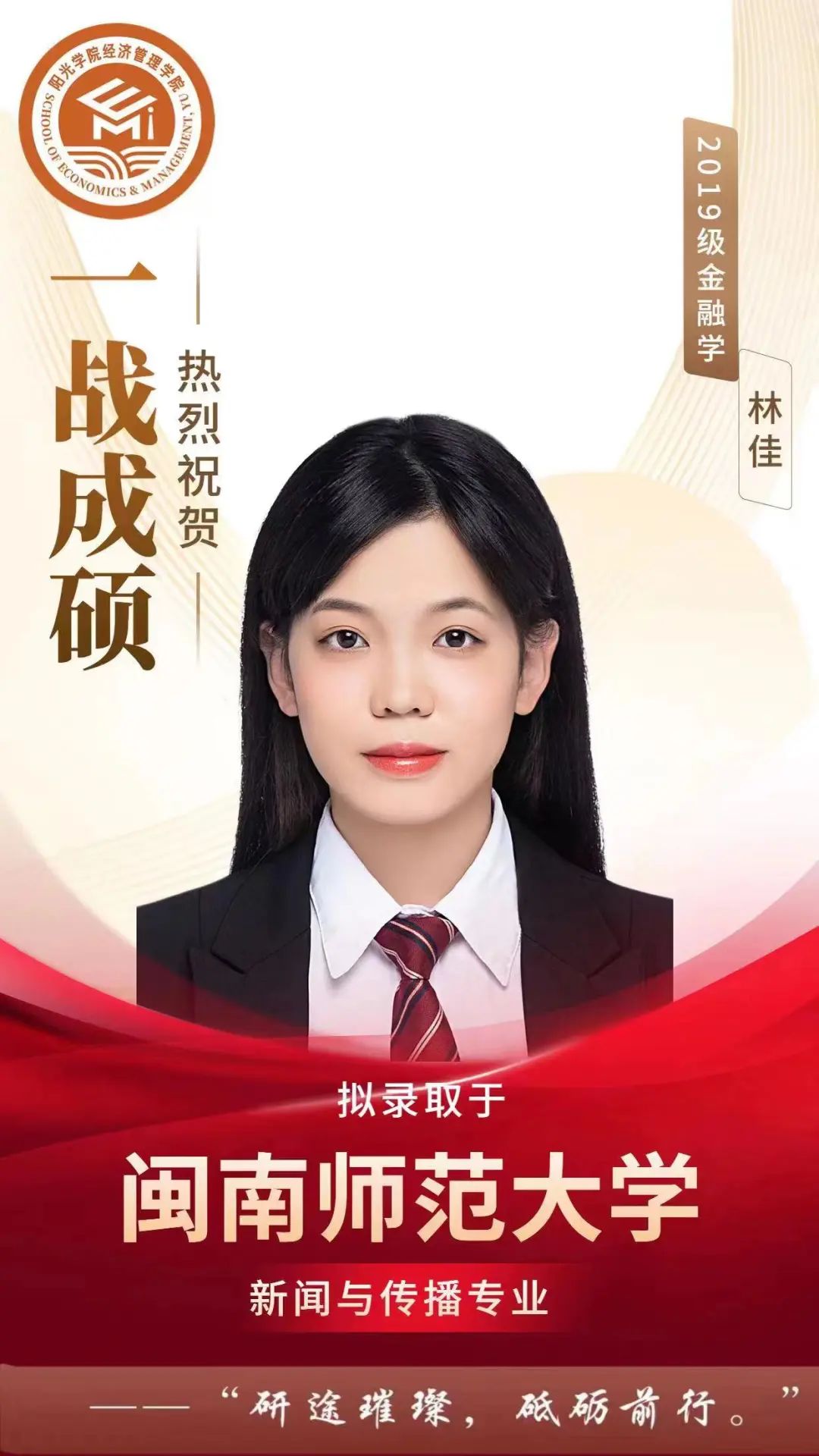 考研喜报⑭ | 经济管理学院林佳被闽南师范大学新闻与传播专业拟录取