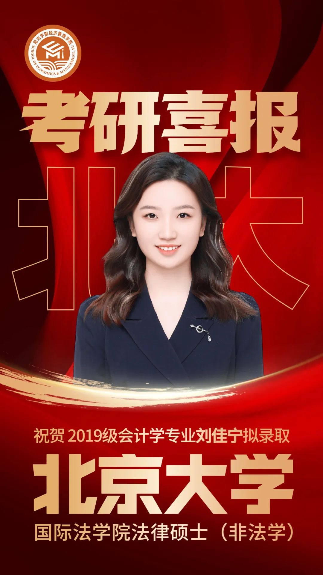 圆梦北大|热烈祝贺2019级会计学专业刘佳宁,拟录取北京大学国际法学院法律硕士(非法学)