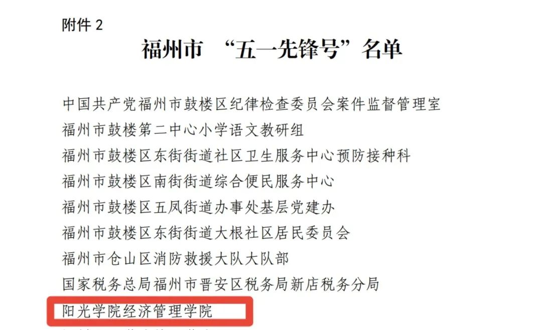 在第133个五一国际劳动节来临之际,福州市总工会公布了《关于命名福州市“工人(五一)先锋号”的决定》(榕工〔2023 〕18号),经济管理学院光荣上榜,荣获2023年福州市“五一先锋号”荣誉称号。
